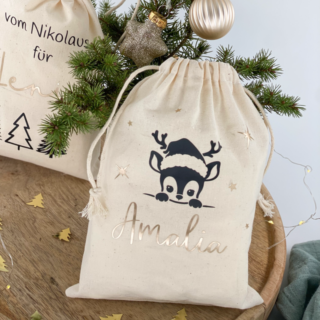 Diese Säckchen bringen genau diese warme, heimelige Feststimmung mit, die man aus Kindheitstagen kennt: weicher Baumwollstoff, liebevoll gestaltete Motive und dazu der eigene Name – ein Gefühl von „Das gehört wirklich mir“. Für Kinder wird es zum magischen Geschenkbeutel, für Erwachsene zum charmanten Begleiter für kleine Aufmerksamkeiten.